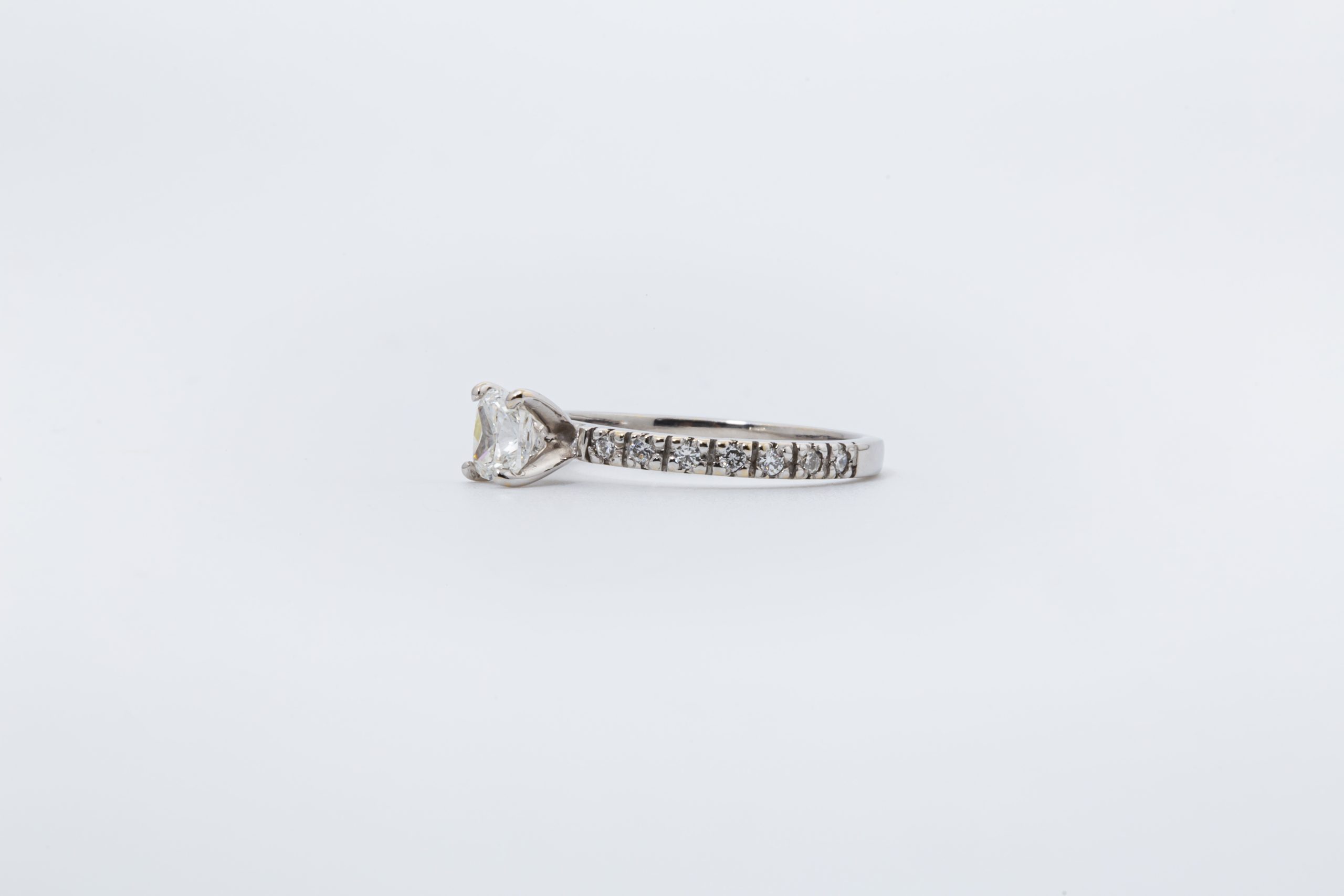 Los diamantes laterales de 10 puntos realzan el centro con un destello adicional, creando un diseño equilibrado, refinado y visualmente impactante. Una joya pensada para una promesa eterna, con presencia y distinción.