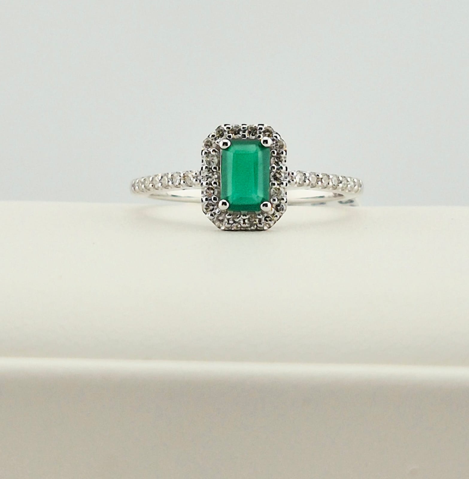 Esmerald Fashion Ring en Oro Blanco 14K con Diamante y Esmeralda Natural – 70 Pts Totales